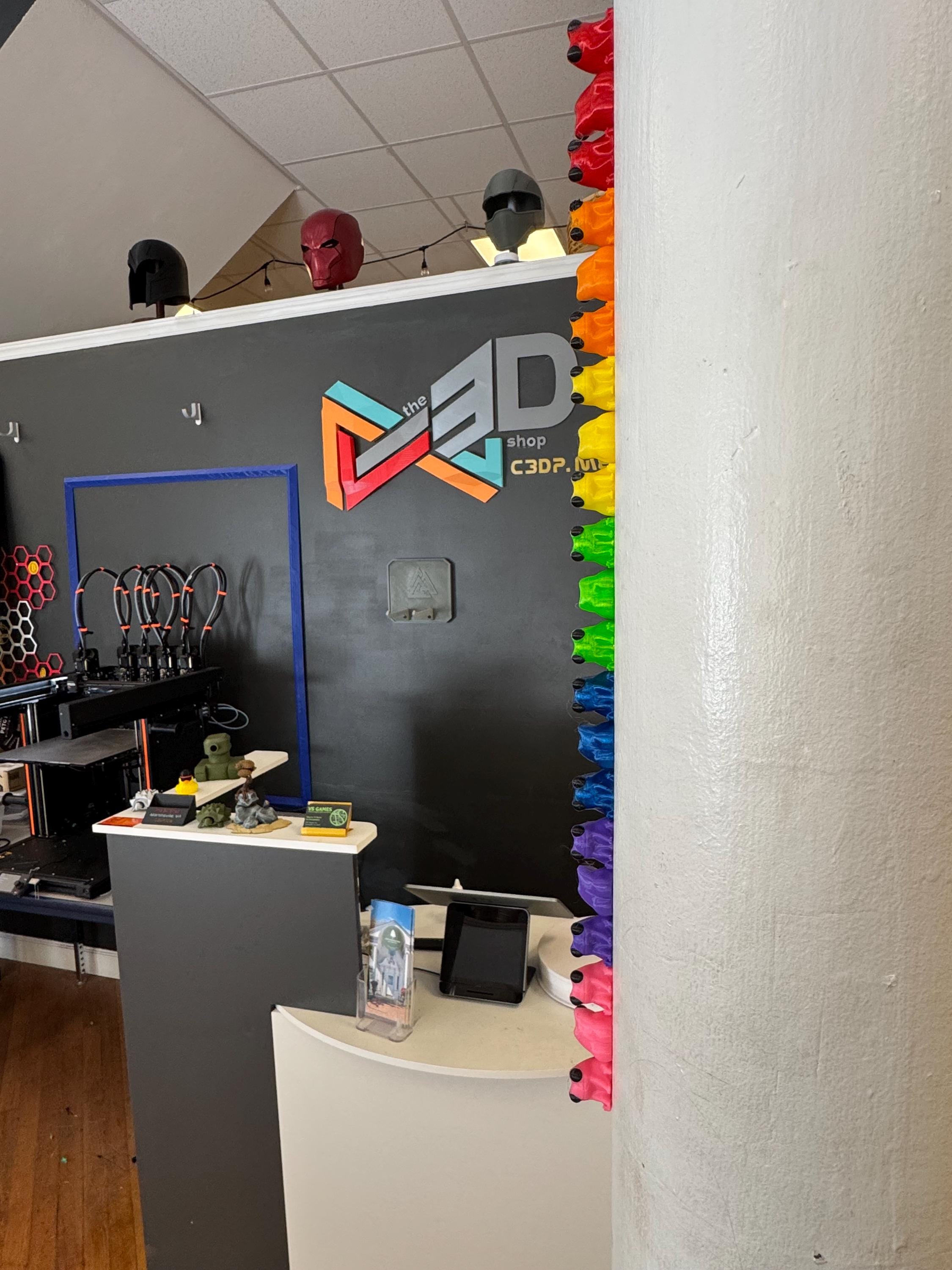 All of our products are 100% designed and manufactured by us here at the 3D Shop in Virginia. We regularly help other people bring their product ideas to life - if you have a product idea or want to learn more about us, visit c3dp.me